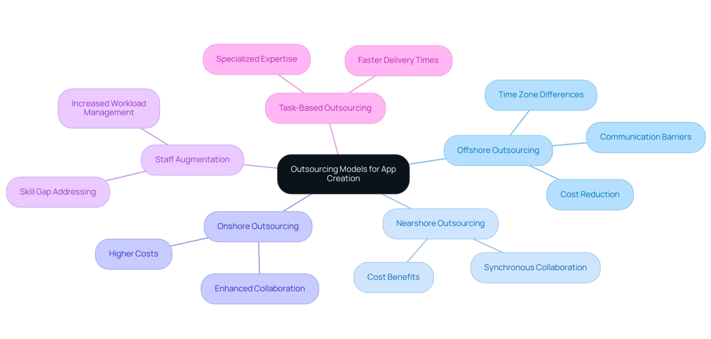 Tech companies in 2025 have a range of outsourcing models for app creation, each presenting unique advantages and challenges: